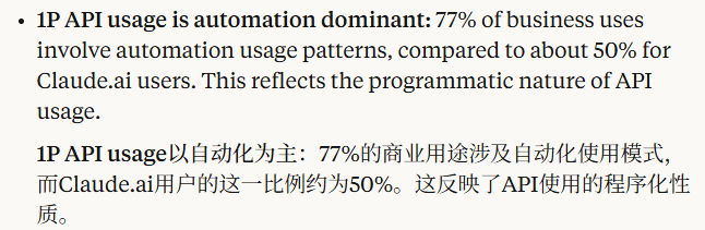 Anthropic报告中“77%的企业API自动化率”是一个极强的信号,它表明在商业应用前沿,AI的角色正在从“人类辅助”快速转向“任务执行”。