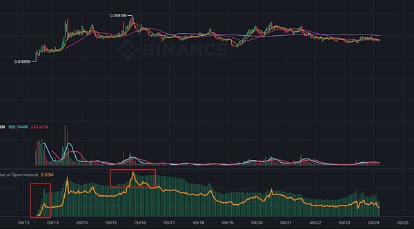 现货全在做市商的手里,只要做市商不砸盘,通过资金费率市场,在 9/12–9/15 拉升阶段,OI 持续提高,资金费率多次飙升,