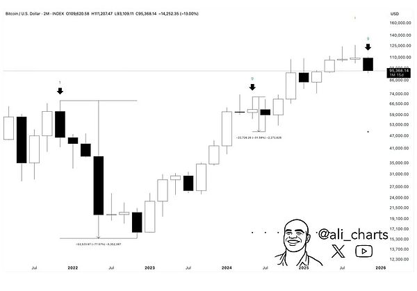 分析师指出,现在是自2022年1月份以来,月线MACD首次转熊。而历史上过去三次月线MACD转熊后,BTC都创造了平均超过60%的跌幅。如果这次还一样,那么目标价将会是4万刀。