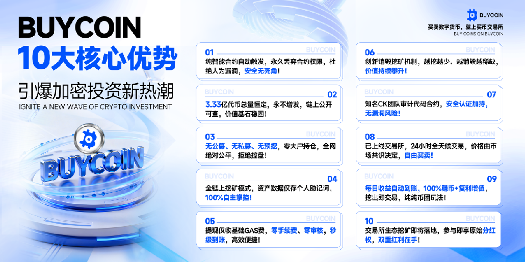 BCT持有者将优先享有BUYCOIN交易所生态扩张的原始红利。即将落地的生态挖矿等场景,将使BCT不仅仅是交易介质,更是分享交易所全生态发展成果的权益凭证,实现“双重红利在手”。